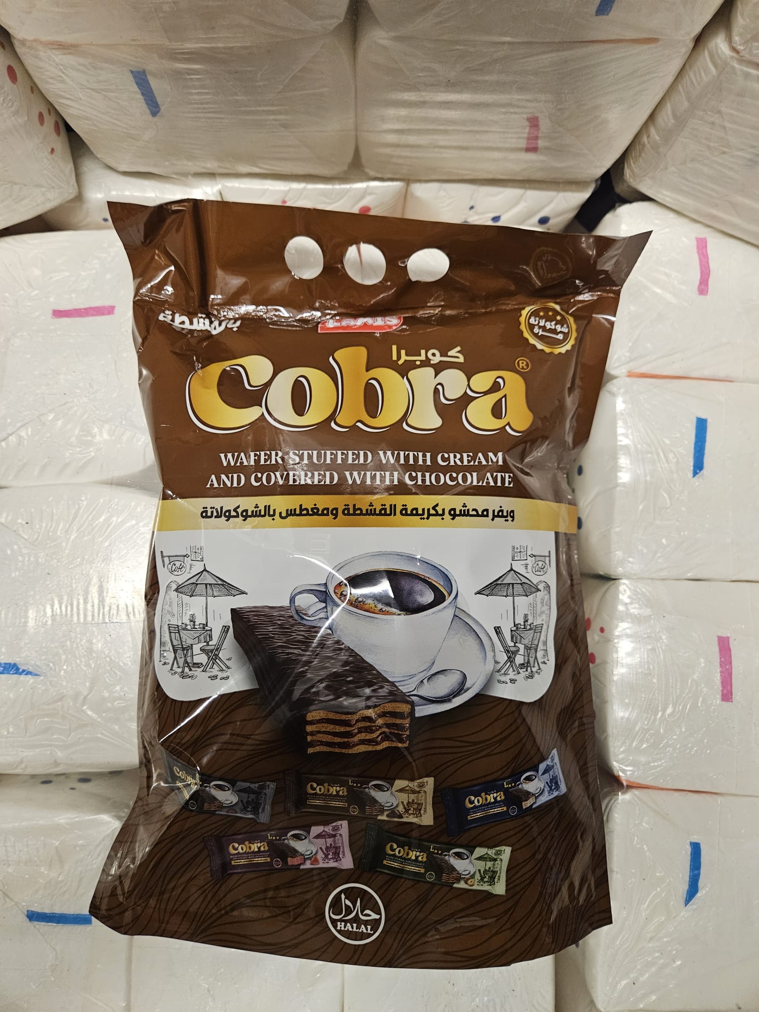 ويفر محشو بكريمة القشطة مغطس بالشوكولاتة